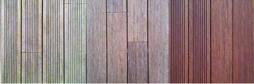 3、隨著氣候干濕度的變化,地板不斷收縮與膨脹,地板表面會變得粗糙。這種現(xiàn)象是木質(zhì)產(chǎn)品廣泛存在的問題。重竹戶外地板經(jīng)過專利的熱處理技術(shù)已經(jīng)有效延緩了地板的風(fēng)化。