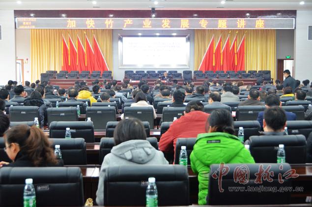 12月9日,黨政大樓附屬樓三樓會議室里,一場高規(guī)格的加快竹產(chǎn)業(yè)發(fā)展專題講座在這里舉行。縣委副書記何軍田主持,縣領(lǐng)導(dǎo)唐學(xué)文、李質(zhì)彬、馬文才、陳震宇、胡國清、肖立新、張亮榮、劉武出席。副處級以上干部,縣直單位、鄉(xiāng)鎮(zhèn)負(fù)責(zé)人,林業(yè)系統(tǒng)工作者共400余人濟(jì)濟(jì)一堂,認(rèn)真聆聽了中國工程院院士、中國竹子加工利用首席科學(xué)家、南京林業(yè)大學(xué)教授張齊生和國家林業(yè)局竹子研發(fā)中心科研處處長、竹筍專家、高級工程師吳良如精彩而豐富的竹產(chǎn)業(yè)講課。